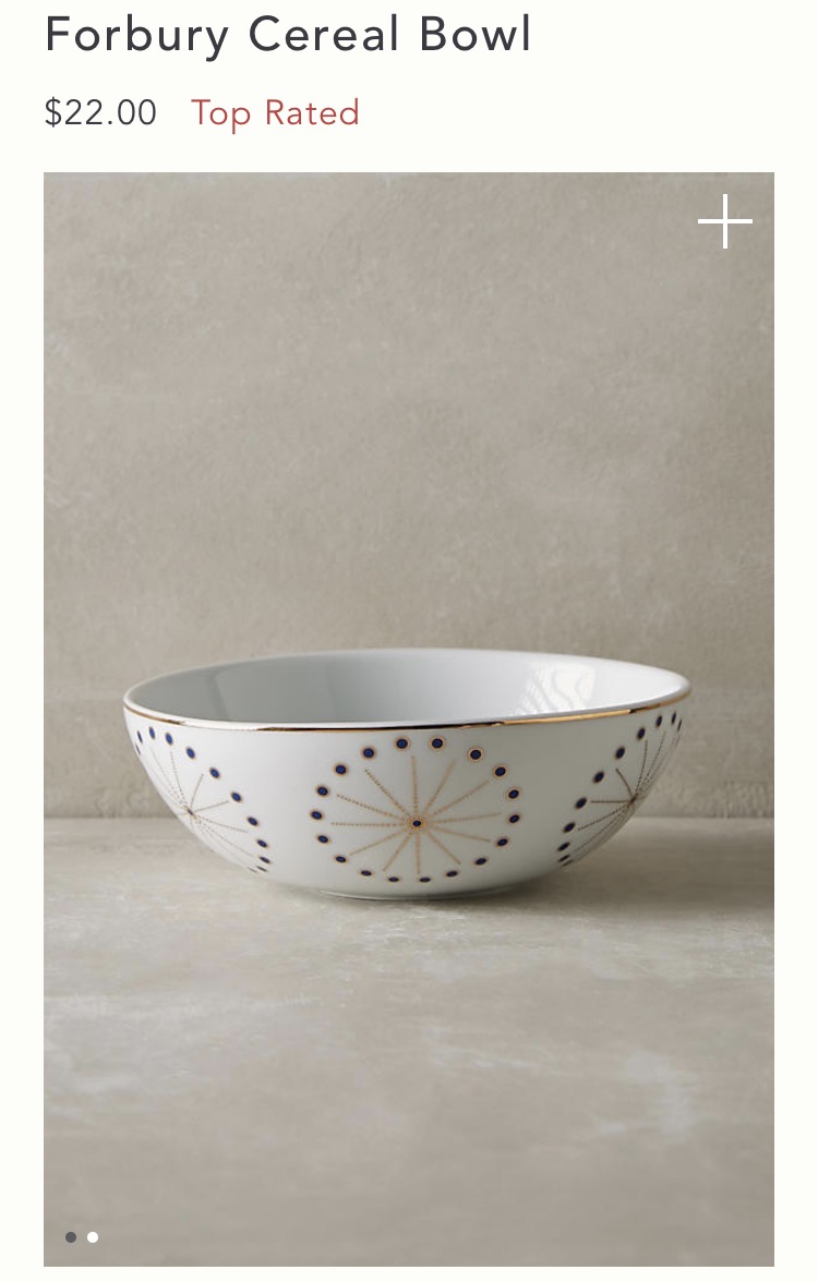 Forbury Dishware- Bowl $20 $5 Small Plate $22 $6 Large Plate $22 $7 Teapot $68 $20 I purchased a full set of these. The only problem is that there is only one of the first plate and three of the other print. I’m not entirely bothered by that yet. I couldn’t pass on the full set.